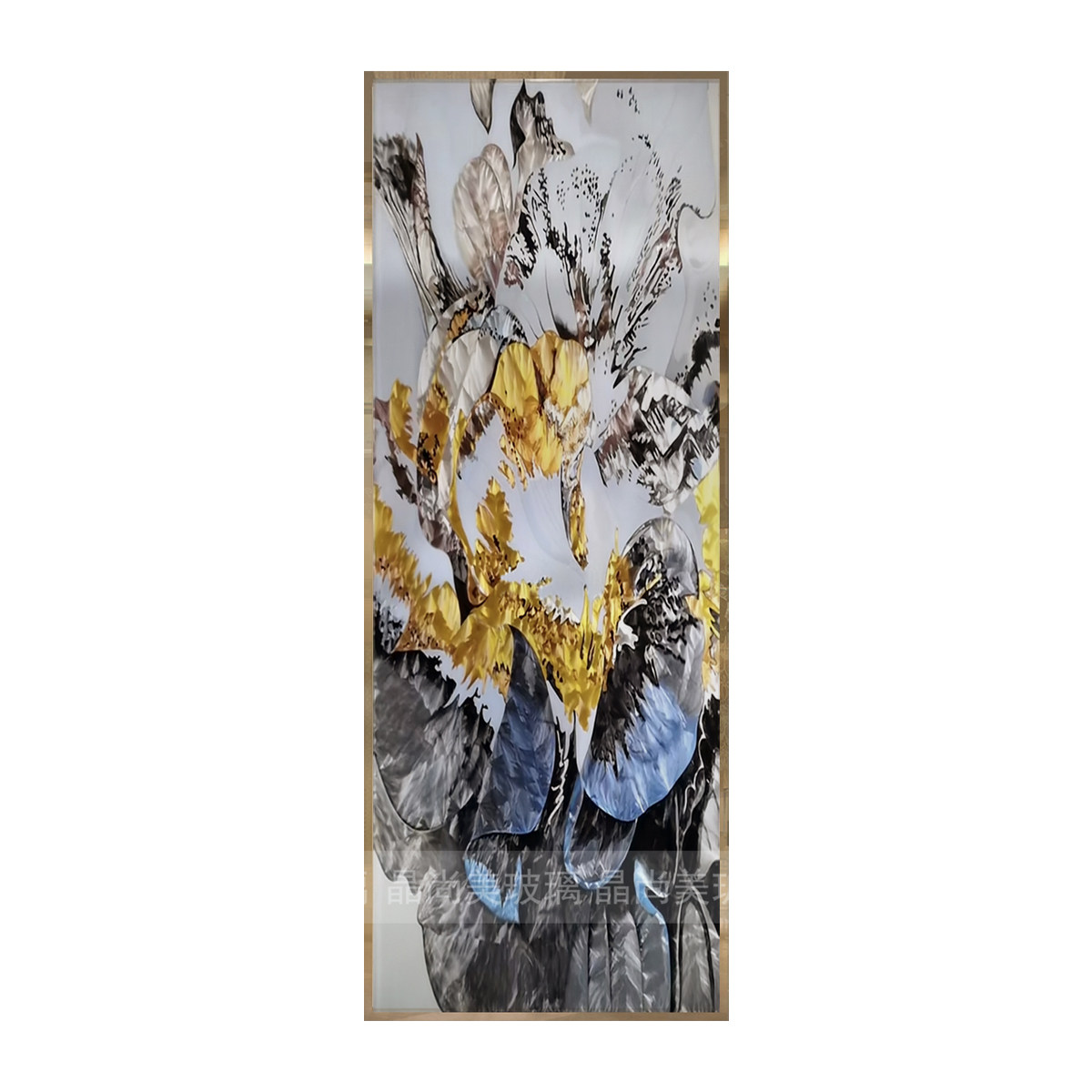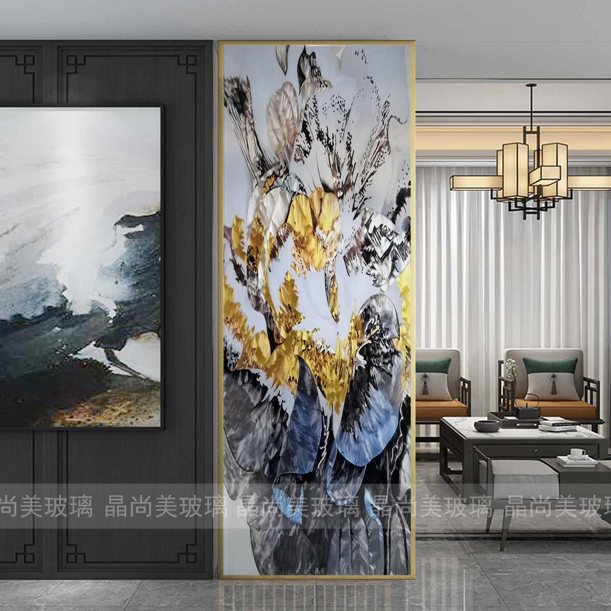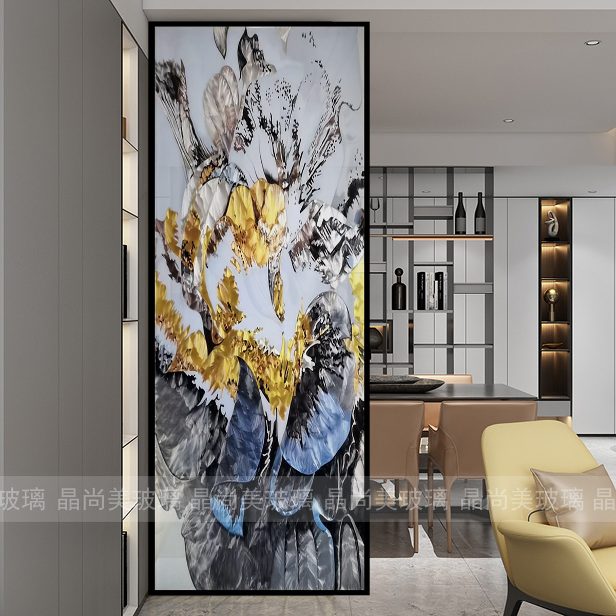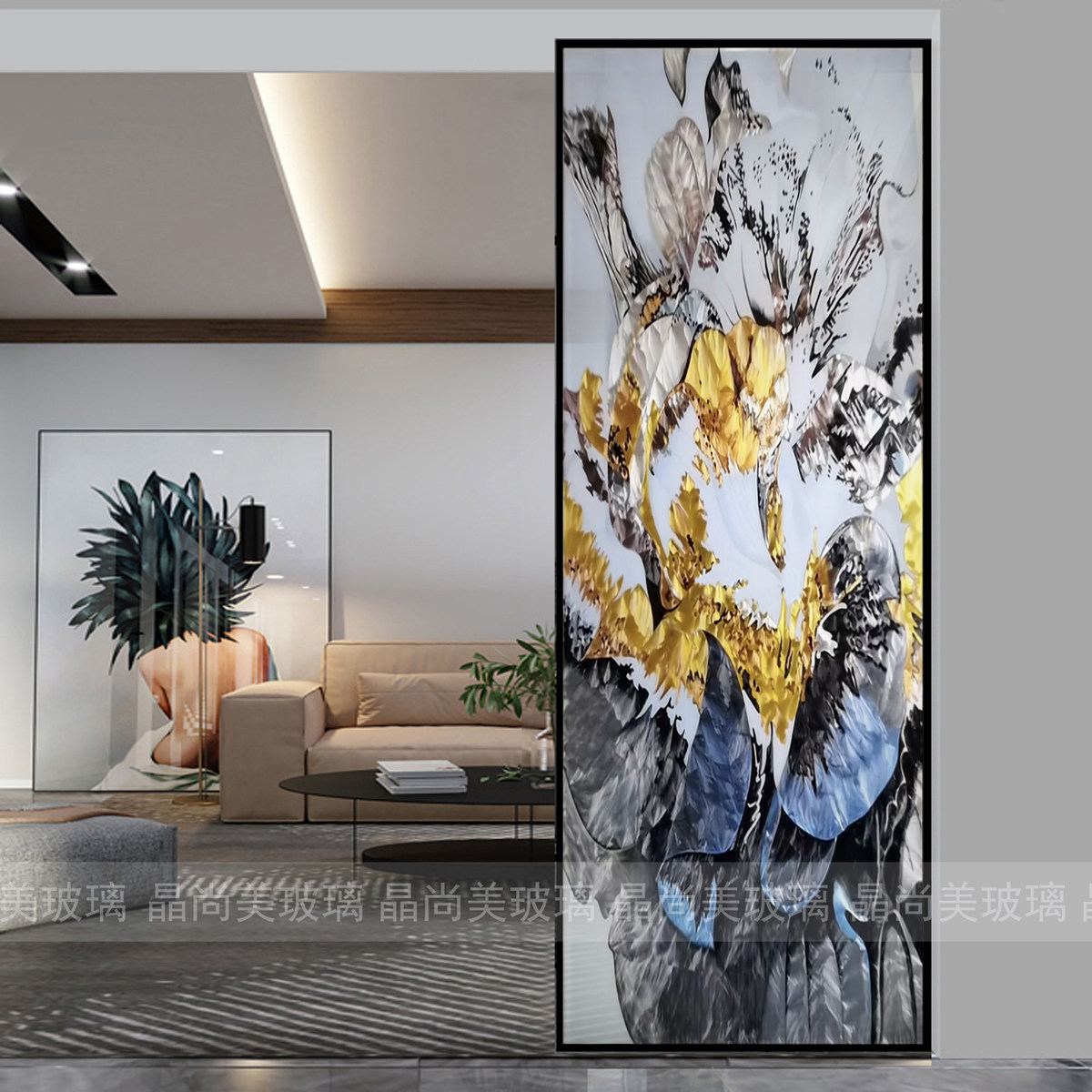 Living room pinching enamel art glass partition screen cream abstract luxury double side light transmitted steel into the home