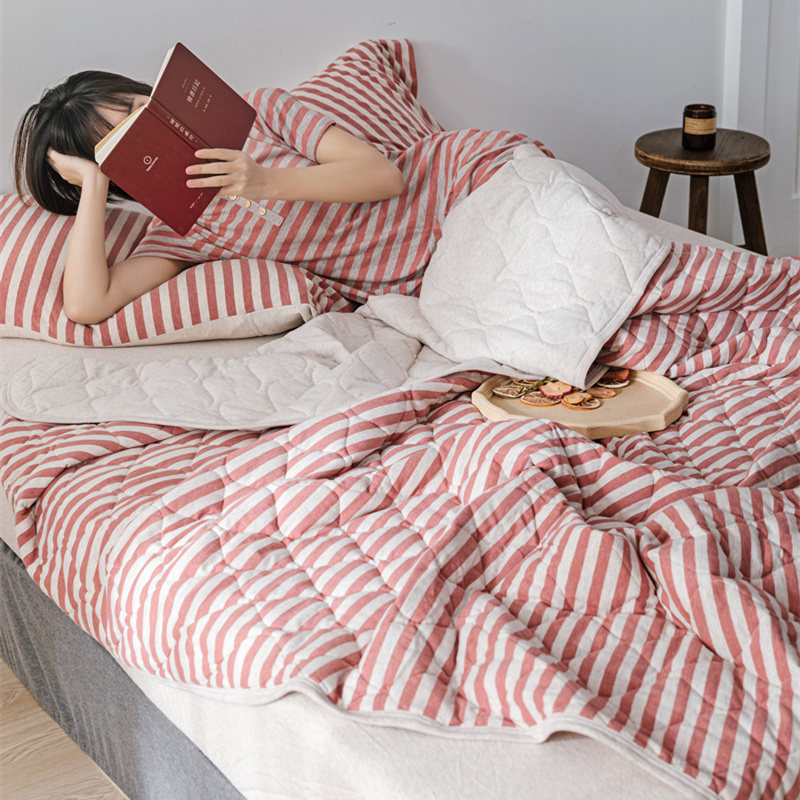 Knitted summer quiltPink gray thin strips knitted summer quiltsRed pink thin strips knitted summer quiltsGray and white thin strips knitted summer quilts light coffee medium strips knitted summer quilts water blue medium strips