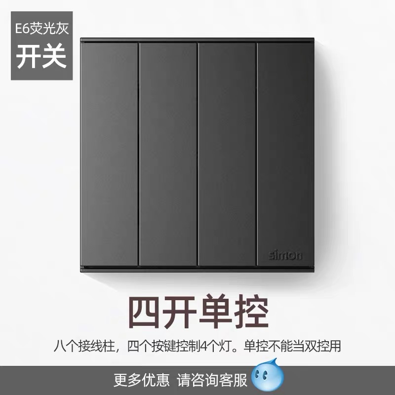 Simone Electric switch socket panel E6 series of fluorescent grey four open four single control switch