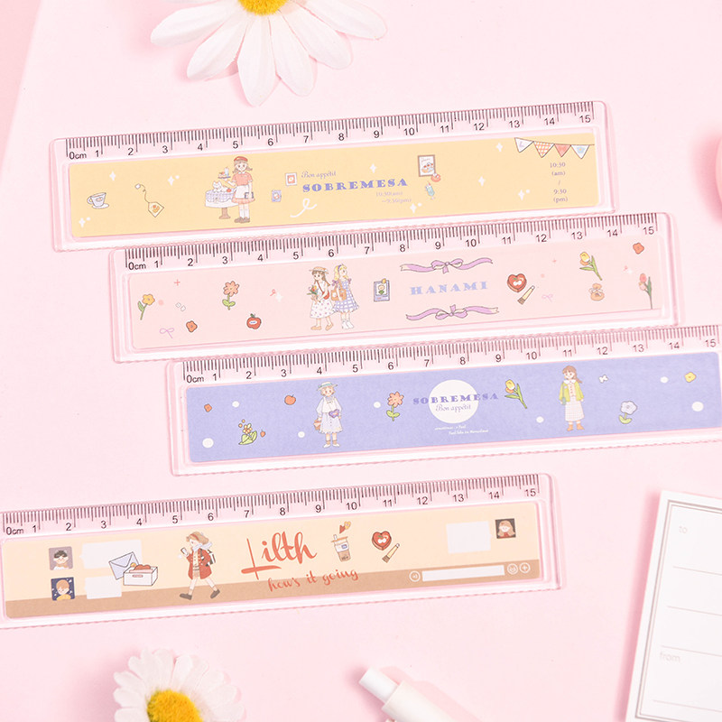 (4) wavy line ruler 20cm transparent plastic drawing measuring ruler elementary school students use 15 cm Korea cute cartoon children examination special multifunction stationery kindergarten stationery