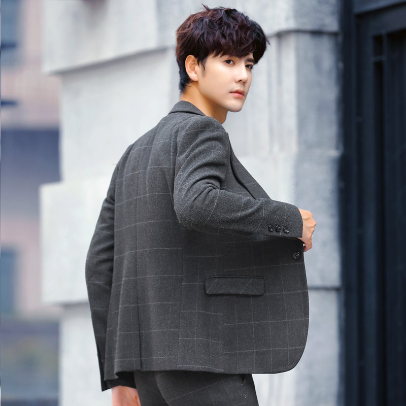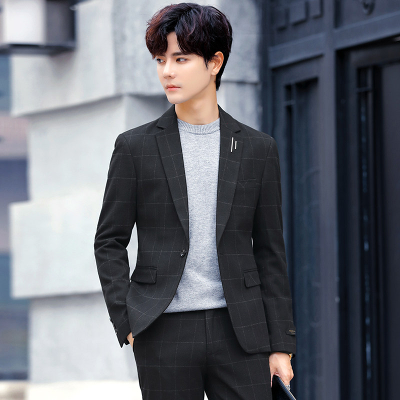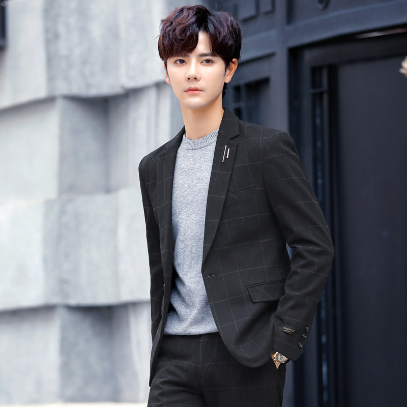 Plaid small suit men's jacket Korean slim trend ruffian handsome jacket one piece casual suit two pieces a suit