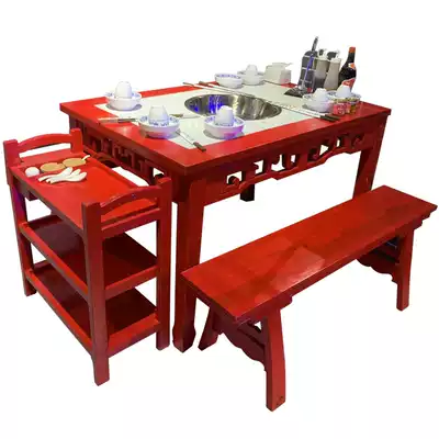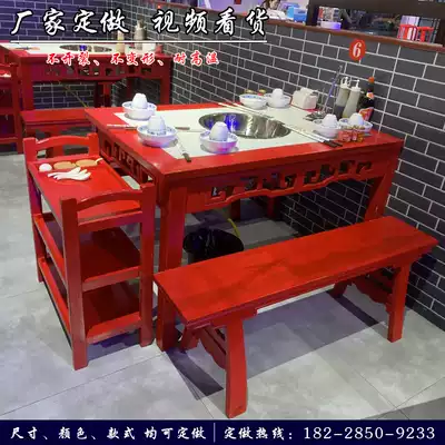 Hot Pot restaurant marble hot pot table and chair combination induction cooker integrated restaurant table and chair commercial solid wood hot pot Table Customization