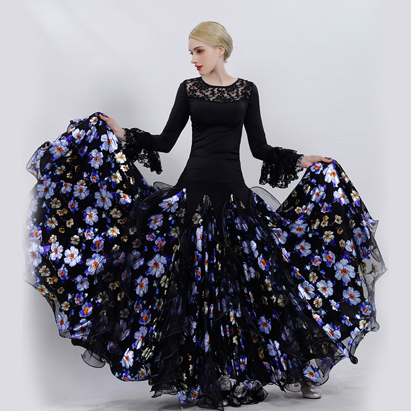 Morden Dance Dress National Standard Dance Fish Line Big Swing Half Body Dress Social Dance Lady Long Dress Dance Play Out Suit