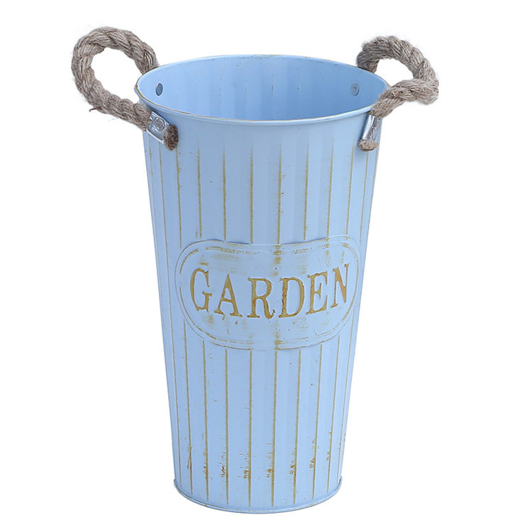 Light blue old hemp rope bucket GARDEN light blue old hemp rope bucket FLOWERS milk white old hemp rope bucket GARDEN blue shower flower arrangement