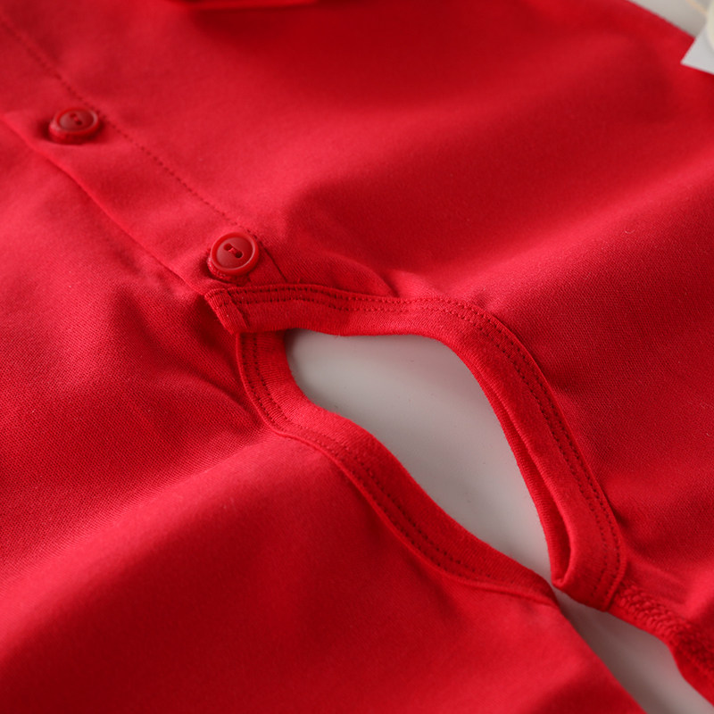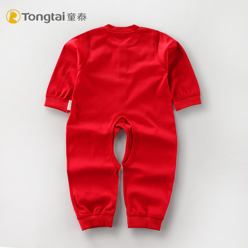 Tongtai jumpsuit baby spring and autumn pure cotton boneless 100-day clothes big red festive baby jumpsuit Chinese New Year clothes