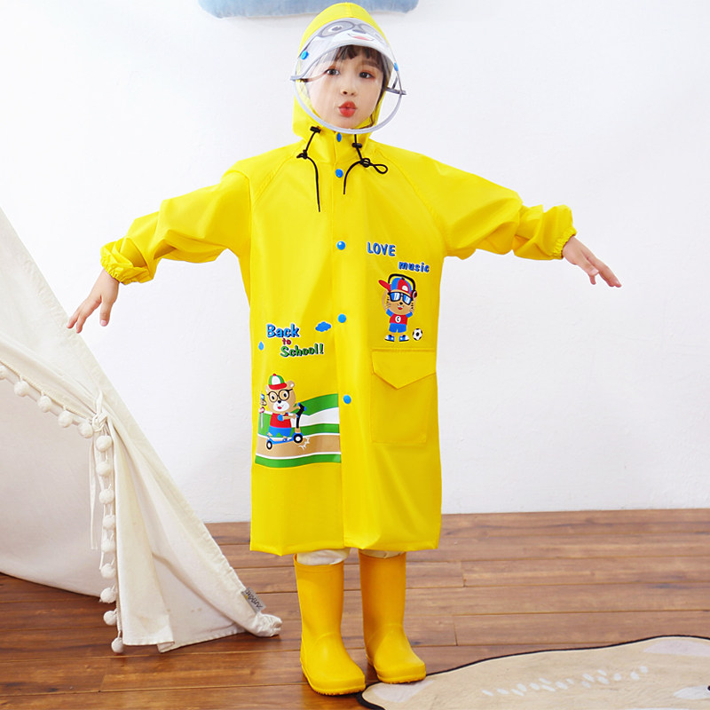 Children's raincoats, boys and girls, double brim, double-layer rainproof water belt, schoolbag, middle child long version, full-body poncho