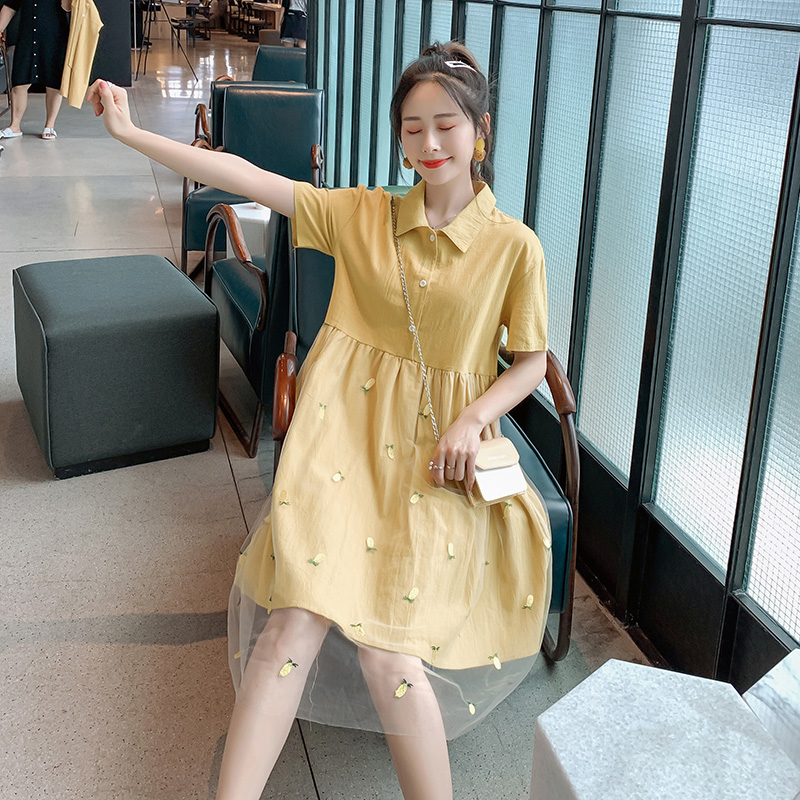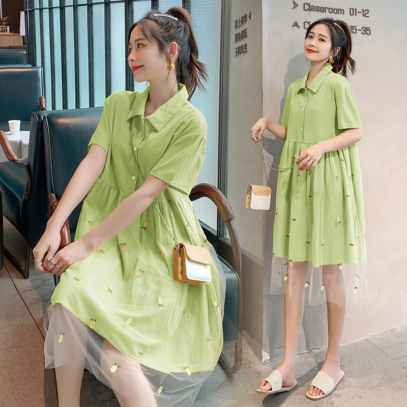 Pregnancy Woman Dress Summer Dress Short Sleeve Foreign Dress Small Freshener Senior Sense Large Size Size Reduction Age Summer Dresses Fairy Superfairy