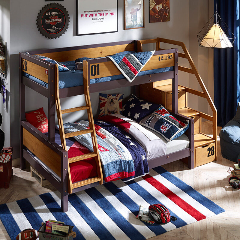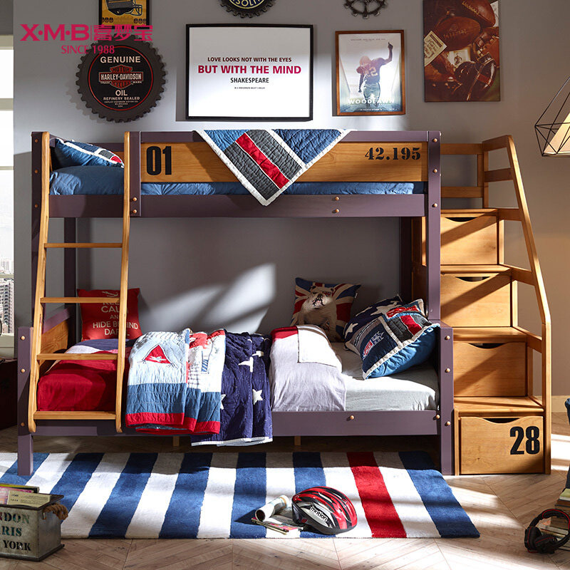 Happy Dream Treasure furniture Children's bed Full solid wood primary-secondary bed High and lower bunk bunk beds Twin Beds Marathon-Taobao