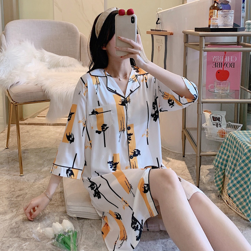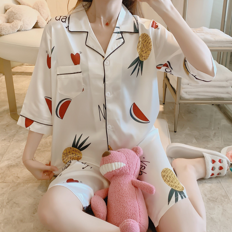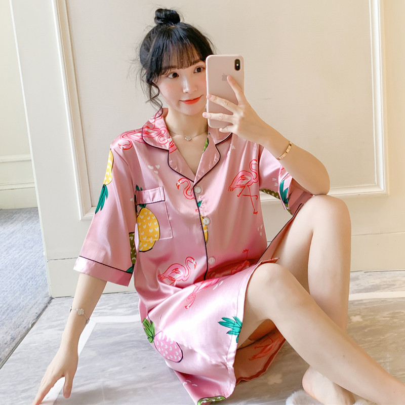 Pajamas women's summer nightdress ice silk short-sleeved thin section net red hot style 2022 spring and autumn silk white pineapple home service