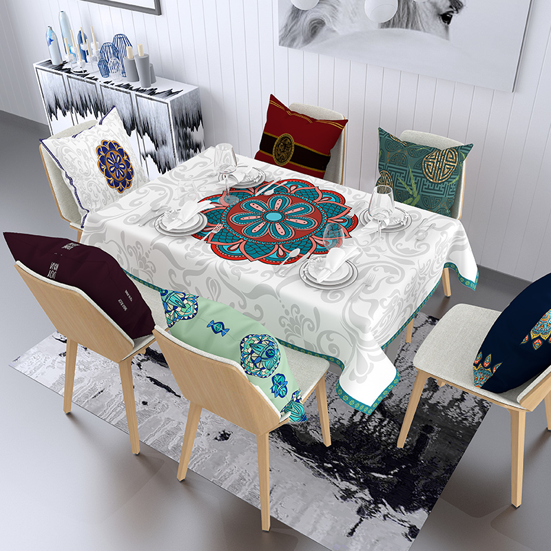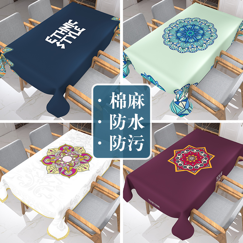 Chinese classic pattern table mat table mat waterproof anti-soup thick desk cloth meal dust-proof table mat striped cotton linen