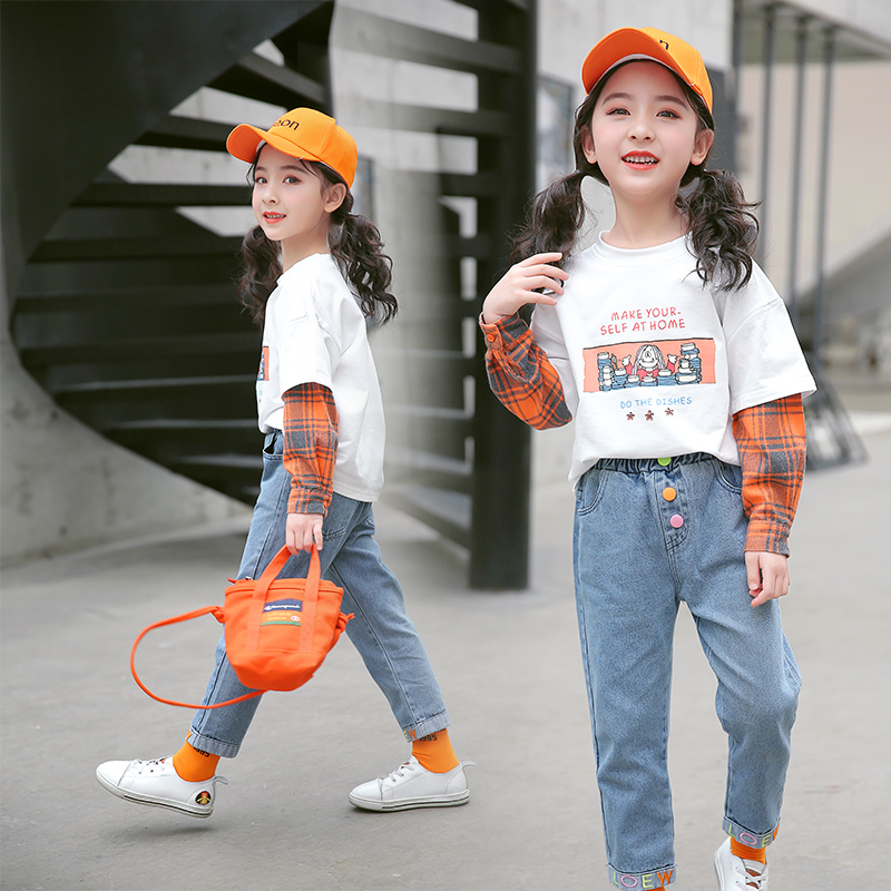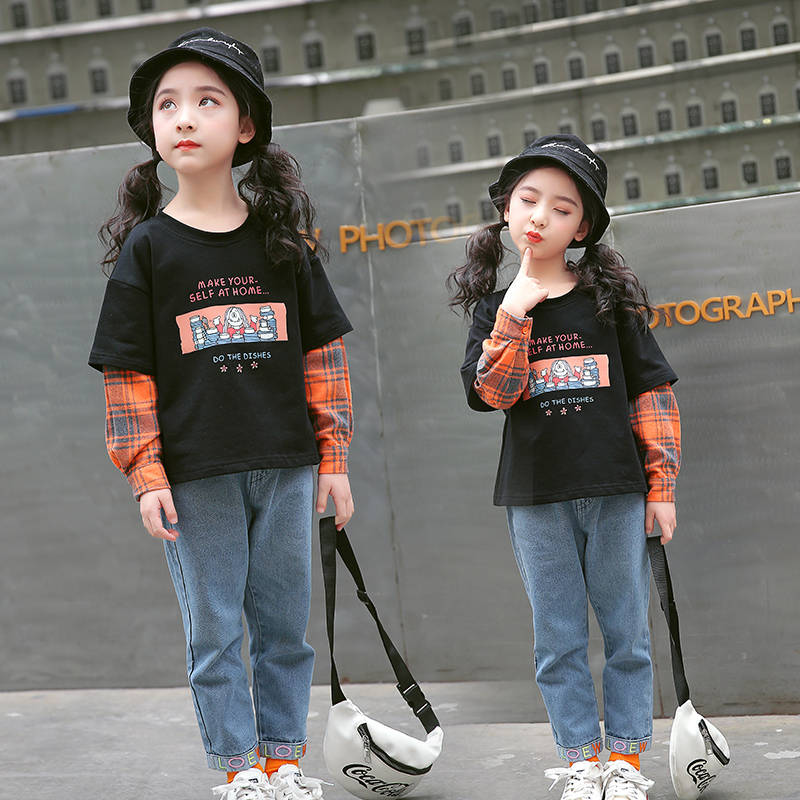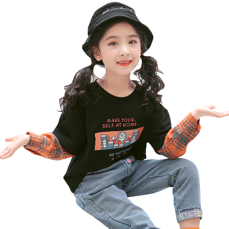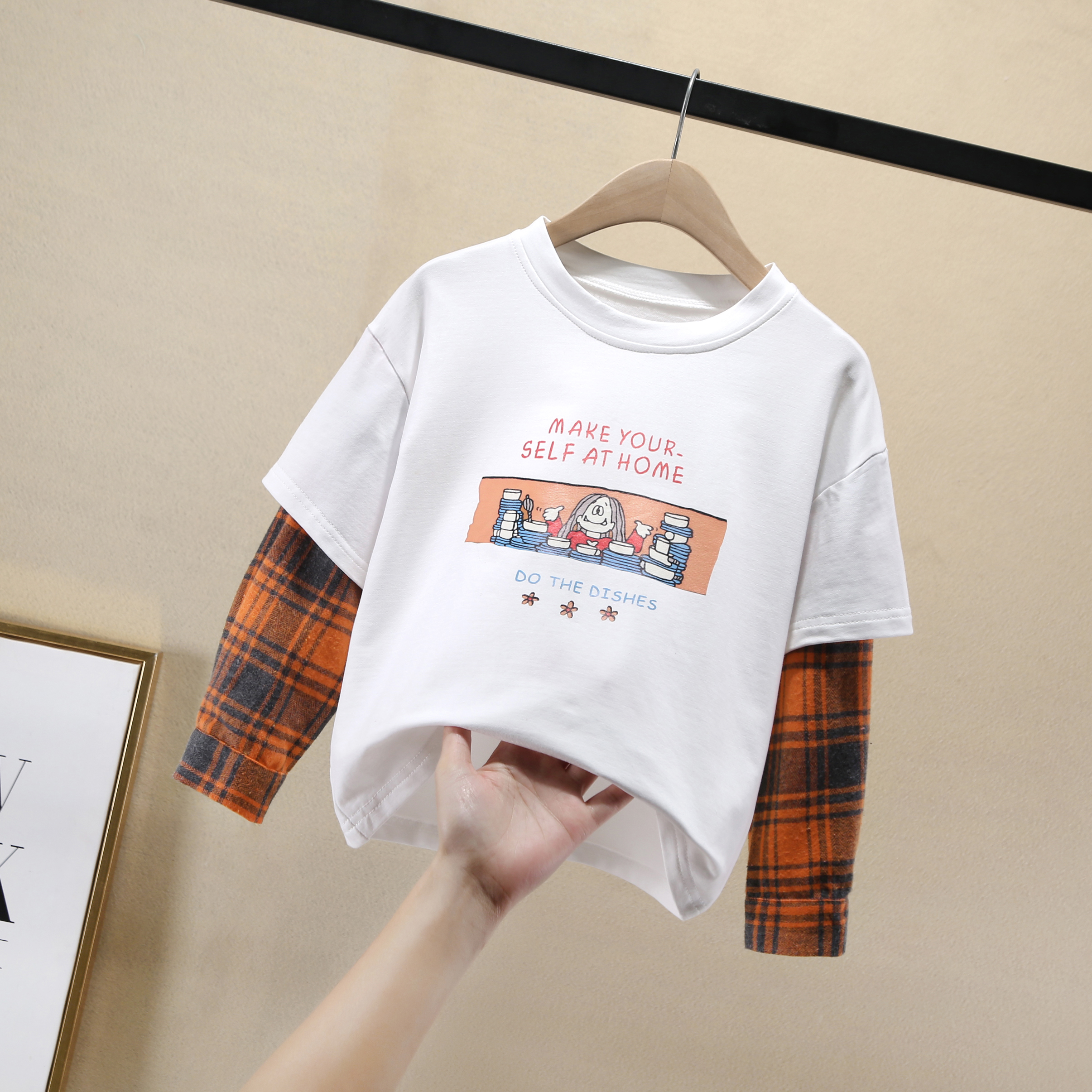 Girl Foreign Pie Clothing 2021 New Spring Dress Long Sleeve Splicing Fake two loose blouses CUHK Girl girl jacket