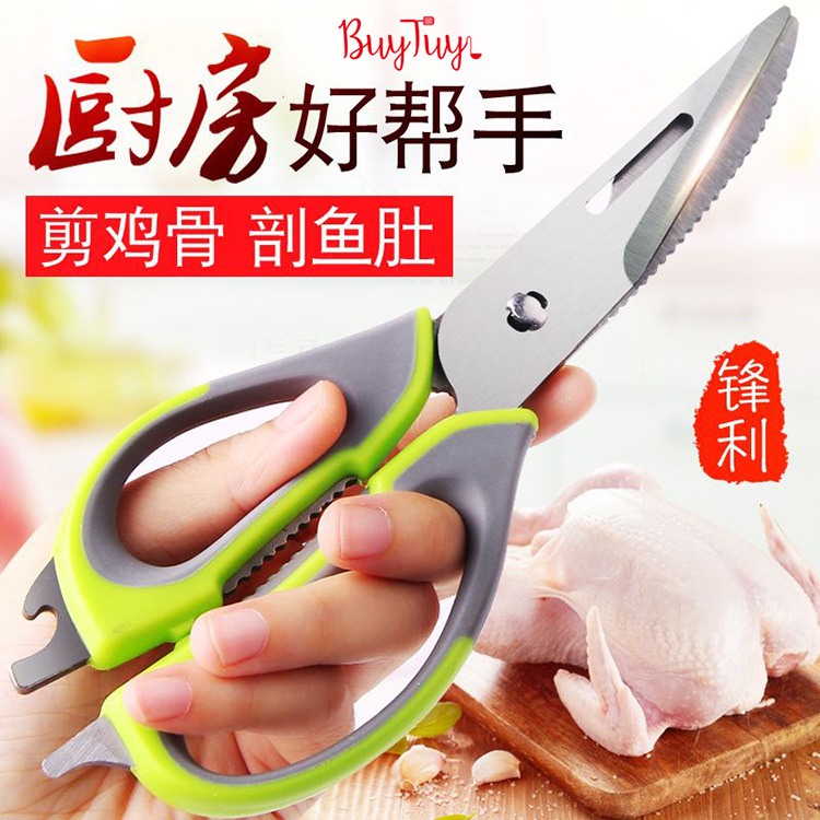 Kitchen household stainless steel scissors powerful chicken bone cut fish cut multi-functional sharp food refrigerator cut