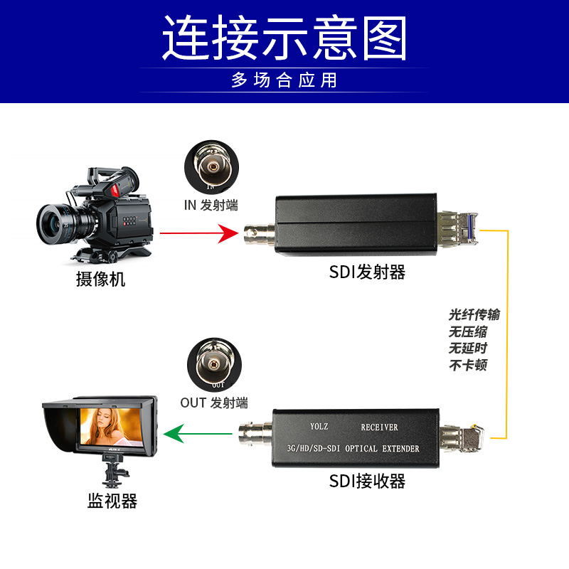 Non-compressed radio and television performance live broadcast HD3G-SDI HD video optical transceiver with embedded sound fiber extension transceiver 1080P60HZ single multi-mode single fiber 20km LC one