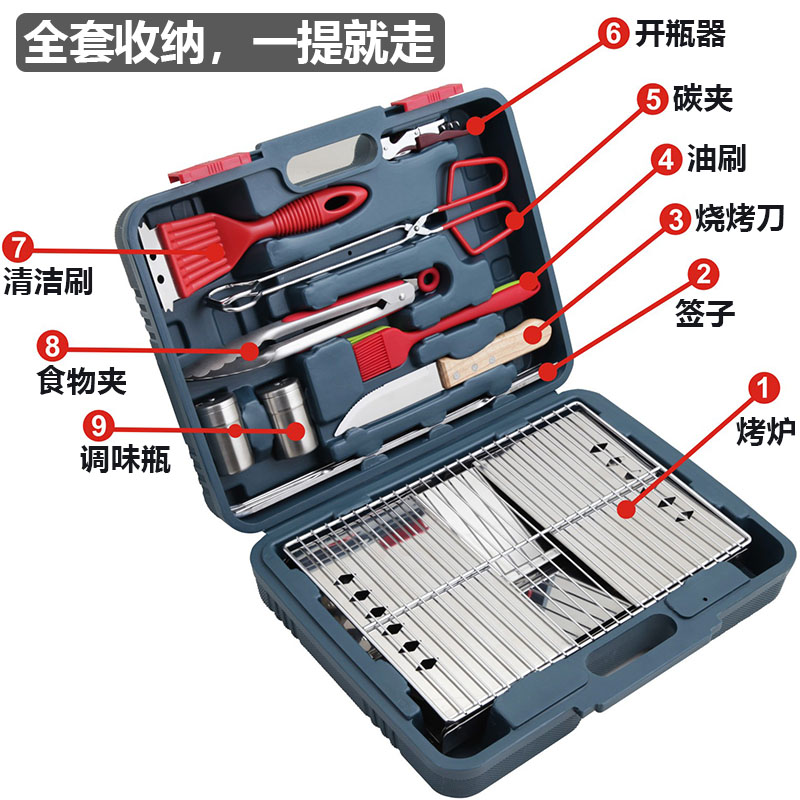 Standard full set of barbecue grill tools set portable folding convenient and tidy
