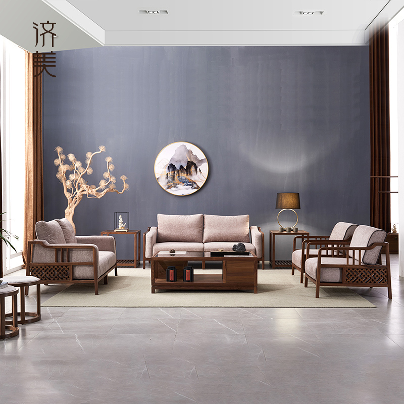 New Chinese Style Sofa Modern Chinese Solid Wood Sofa Combination Simple Living Room Furniture Fabric Factory Direct Sales Custom Zen