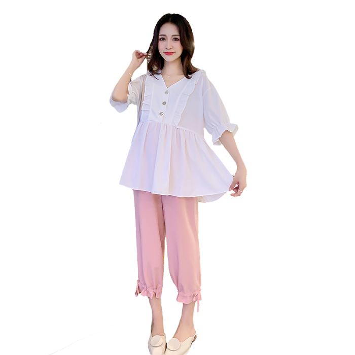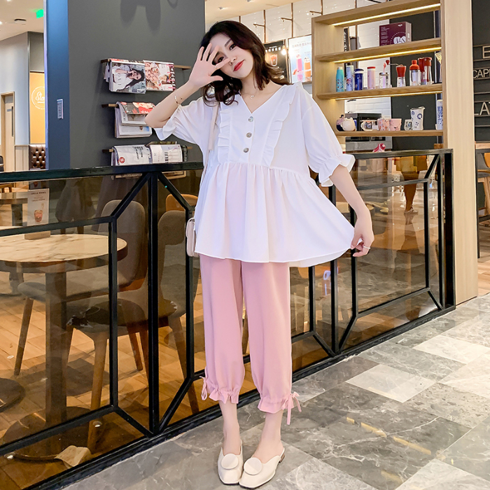 Pregnant women fashion suit 2021 new Korean version of the tide mother to cover the pregnant belly women's Western style casual two-piece summer suit