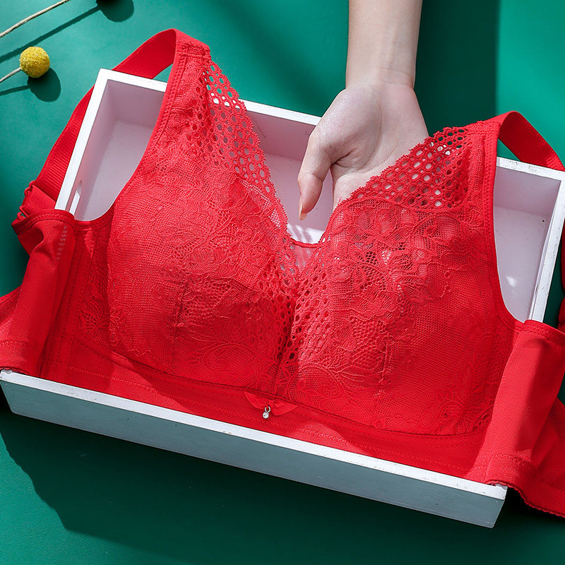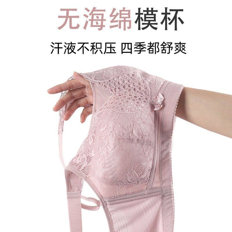 Underwear women's thin section big breasts show small breasts no steel ring to receive auxiliary breasts all-inclusive full-cup bra large size ultra-thin bra