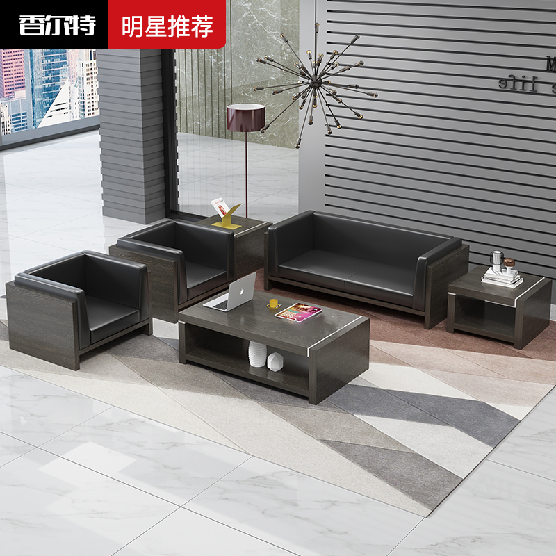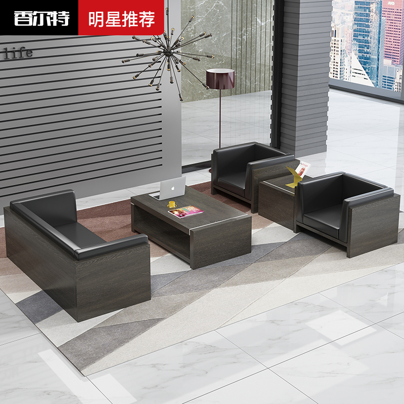 Crown office sofa coffee table combination simple modern reception area business reception room leather sofa trio
