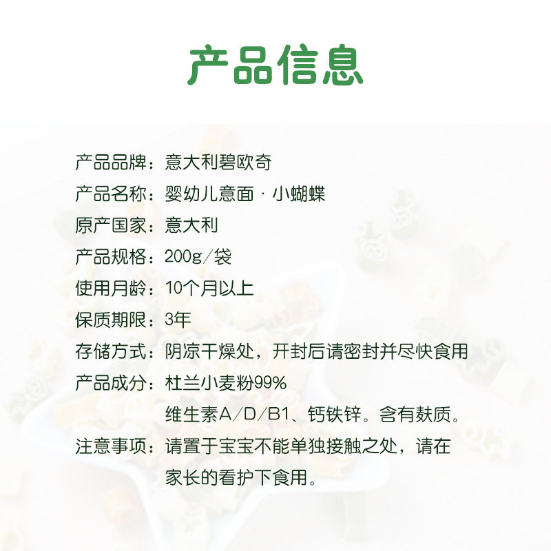 Italy imports Bio chic baby original taste Italian pasta baby boy with small butterfly cartoon grain surface 200g