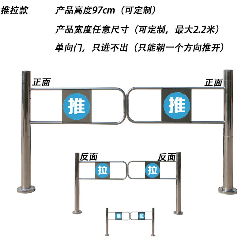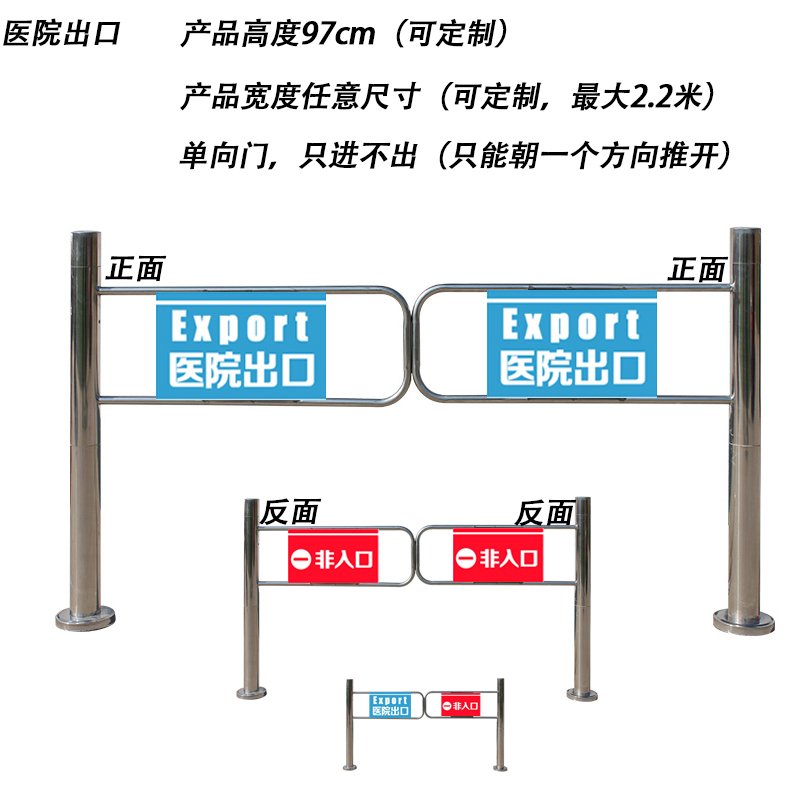 Supermarket one-way door import and exit exit and exit gate swing gate only to not be able to not collect silver counter stainless steel guardrails closed door