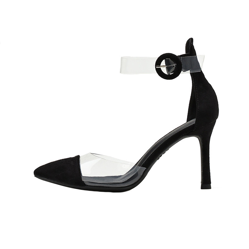 Sexy Straight Buttons Sandals 2020 New Spring 100 Hitch Heel Pointed Hollow Female Shoes Fairy Wind High Heel Single Shoes