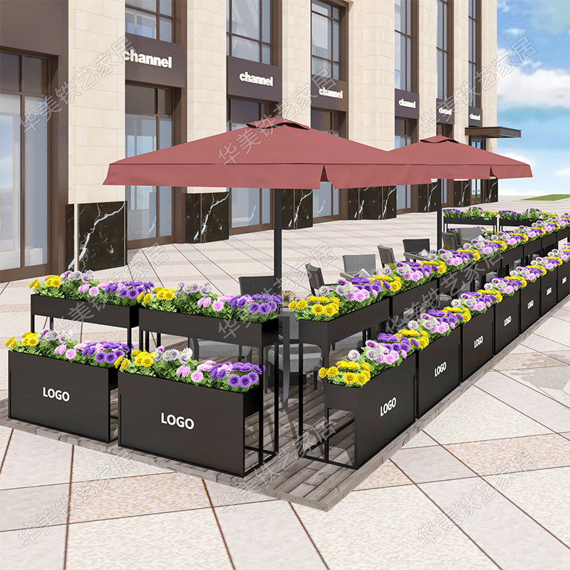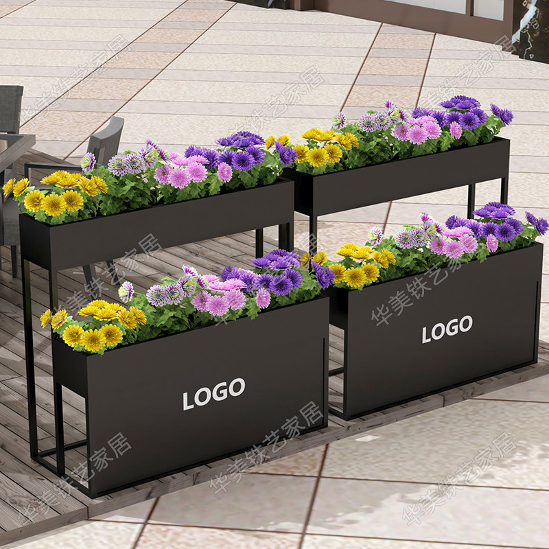 Outdoor Iron Art Custom Flower Case Plant Flower Shelf Long Strip Courtyard Partition Embalming Planting Flower Trough Milk Tea Shop Flower Bed