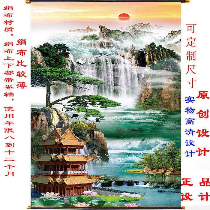 Sanbao Foyuange thick cloth new version of landscape painting Fengshui painting hall single can be customized Xianjia landscape ten