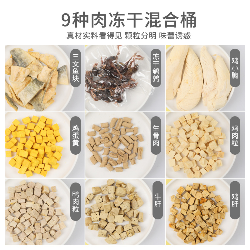 Pets Freeze-dried Whole Family Keg Cat Nutrition Fatter Chicken Breast quail adult Cat Hair Blush Mix Barrel 500g