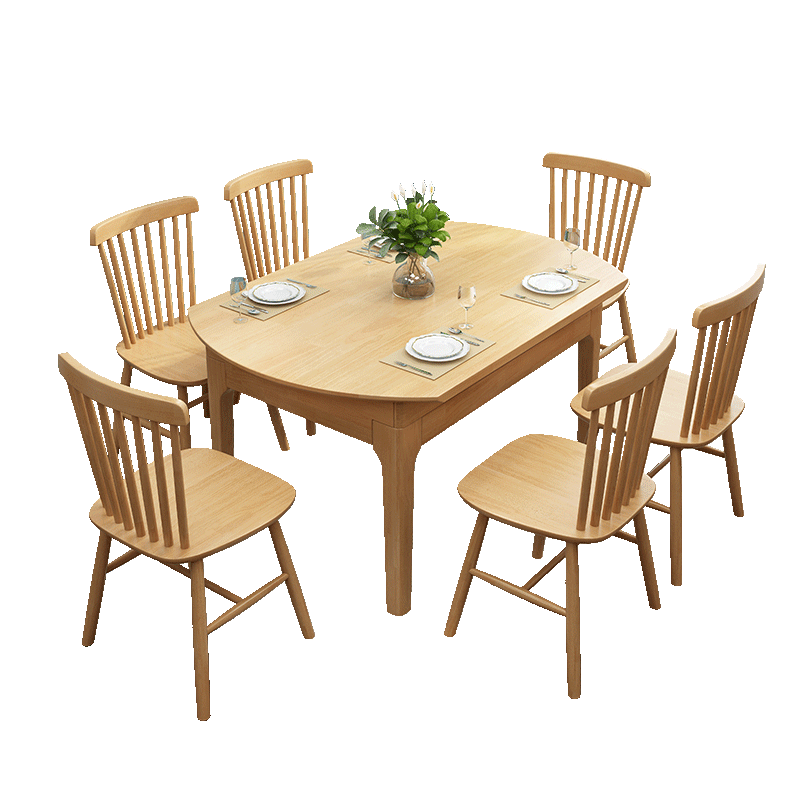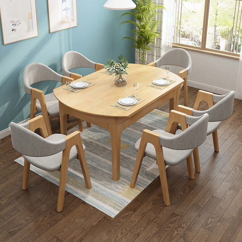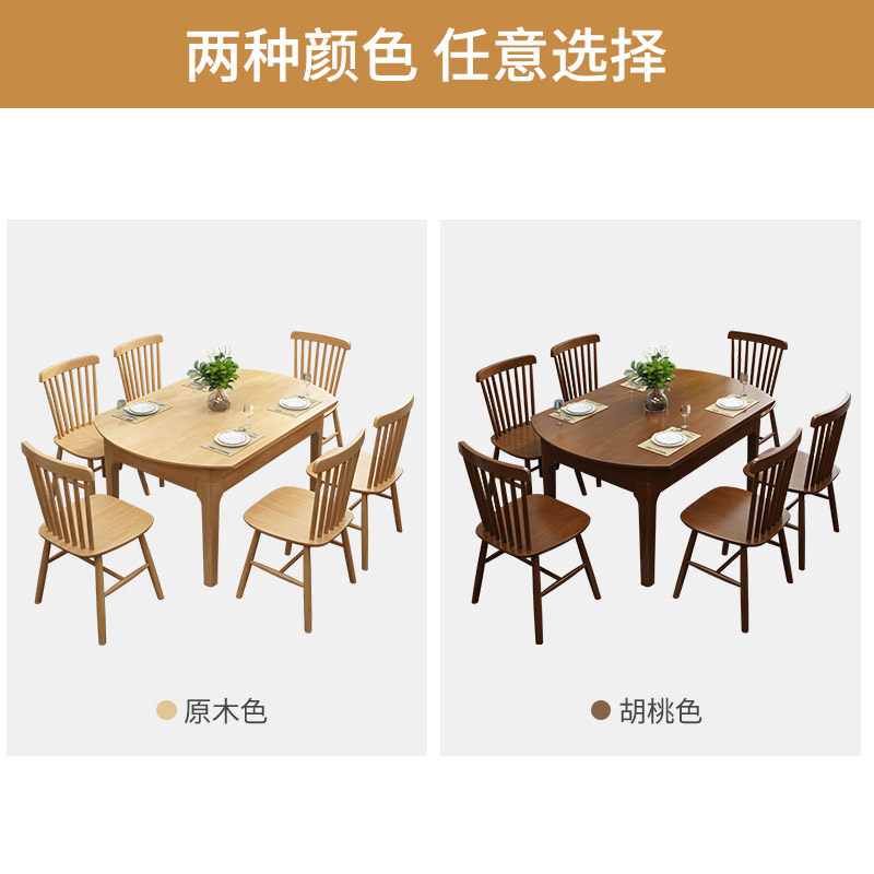 Nordic all solid wood dining table and chair combination home small apartment modern simple retractable folding square round dual-purpose dining table