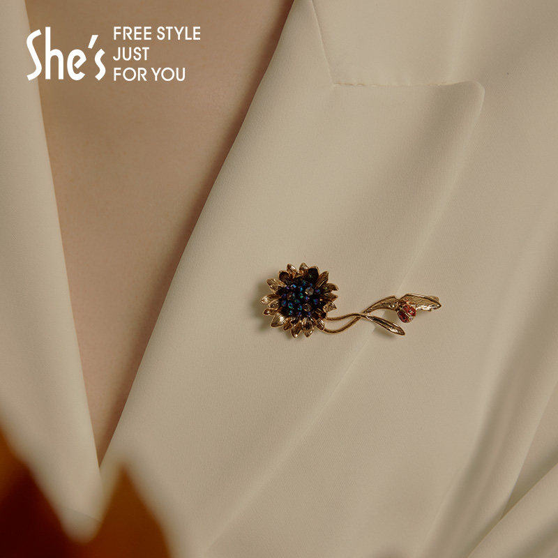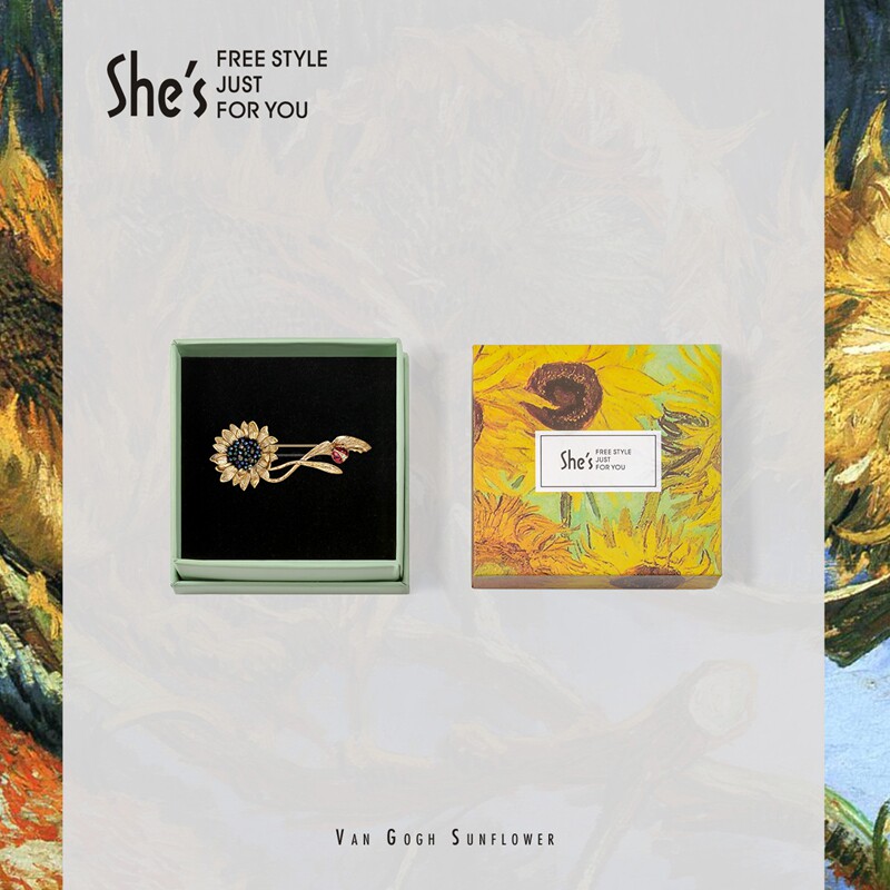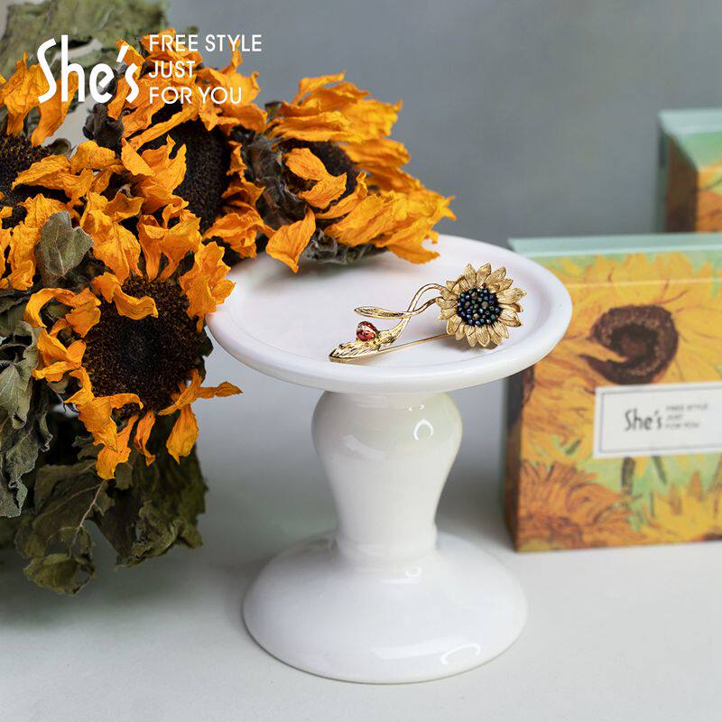 Shes Zizi Van Gogh Sunflower Original Series Handmade Beads Retro Mine Color Crystal Ladybug Brooch Accessories