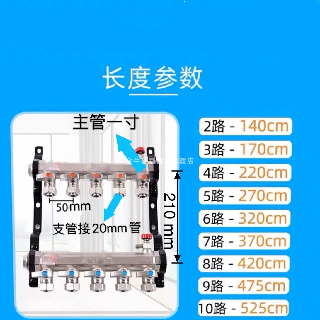 Floor heating water distributor Home improvement thickened copper one-piece water collector supervisor one-inch branch pipe 20 floor heating pipe