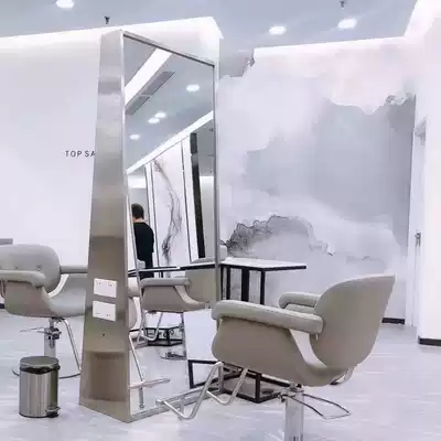 Net red hairdressing mirror table hair salon special store double-sided mirror table simple high-grade stainless steel floor-cutting mirror