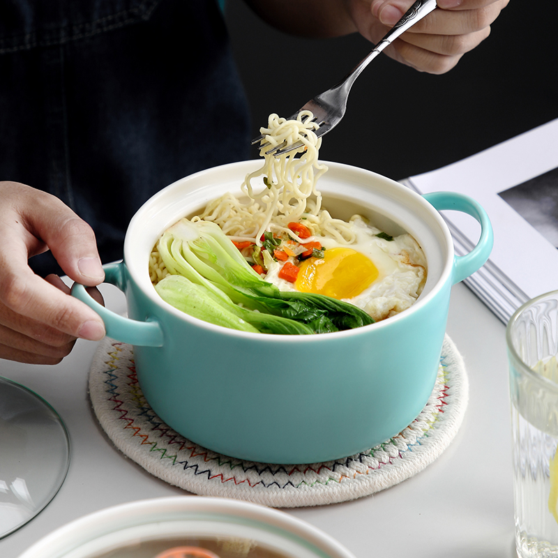 Girl heart pink ceramic instant noodle bowl with lid with handle Nordic style net red cute soup bowl Microwave oven available