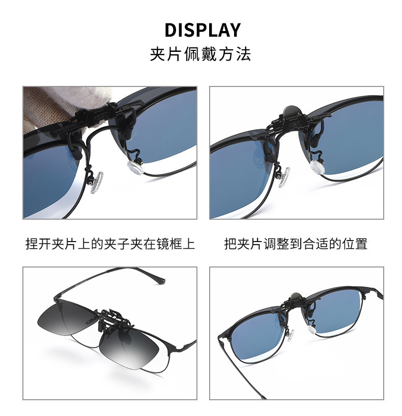 HUGOMOFELL POLARIZED INK MIRROR CLIP-TYPE MYOPIA FISHING DRIVING MIRROR SUNGLASSES MEN AND WOMEN DRIVING AGAINST UV