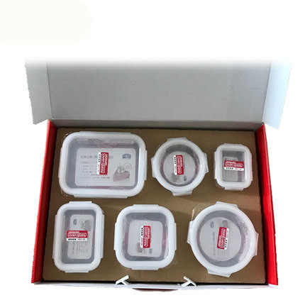 Music Buckle Lotte buckle heat-resistant glass refreshing box Courtesy Kit Glass Lunch Box Lunchbox Glass Bowl 6 pieces of rice bowls