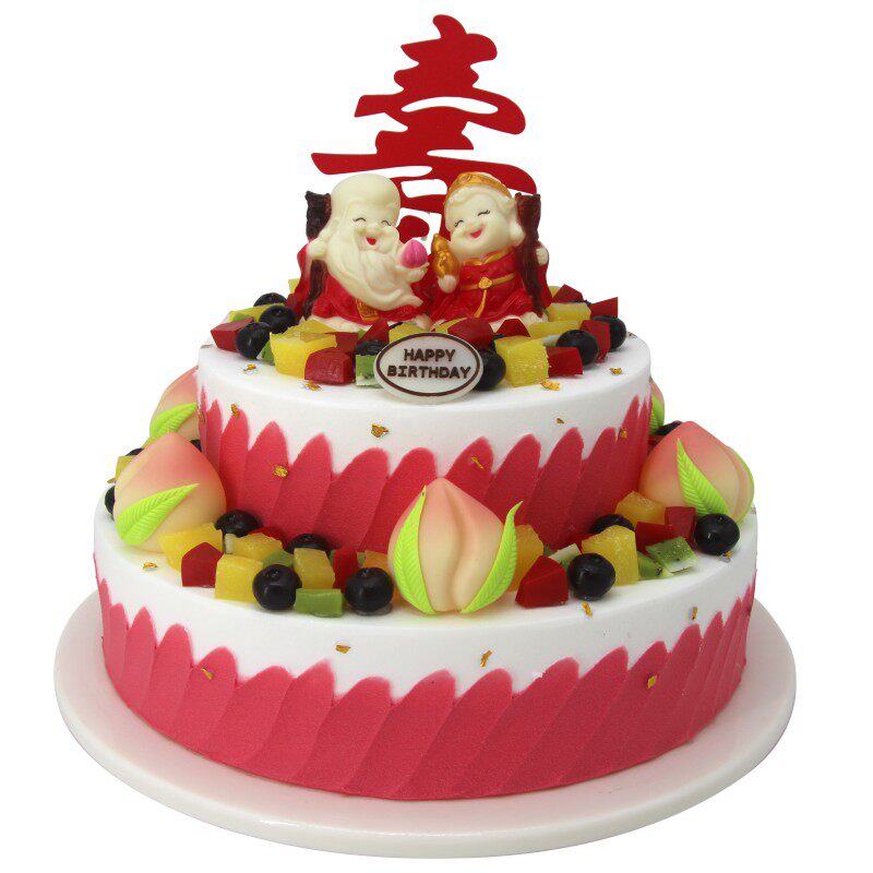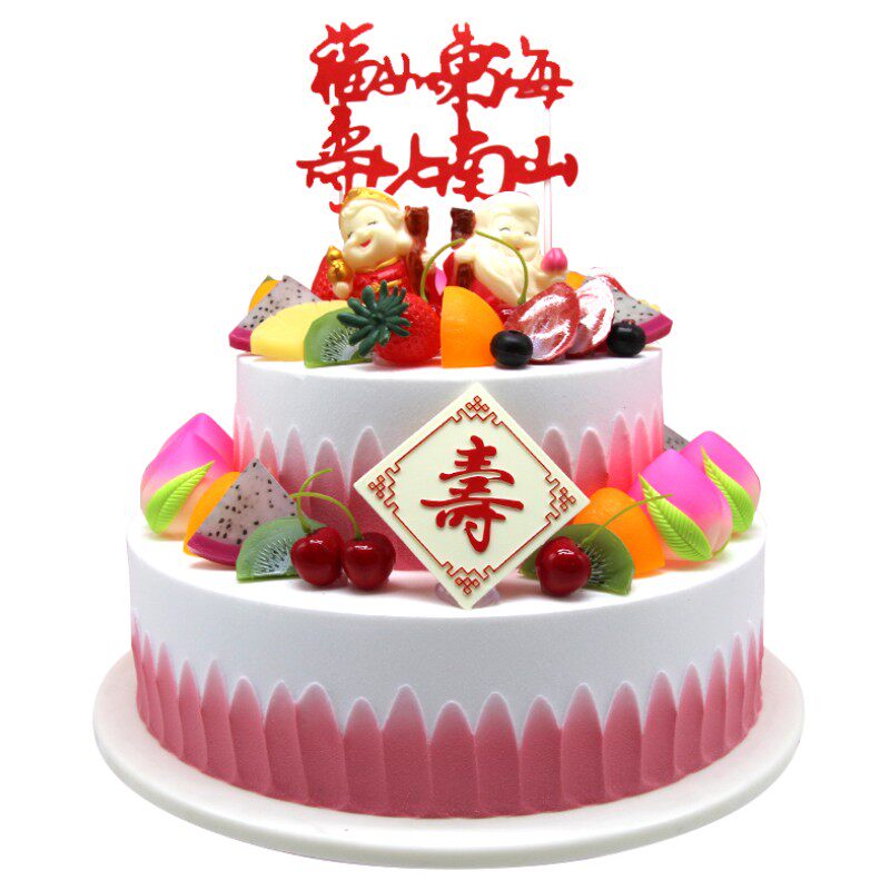 Simulation cake model 2020 new net red double-layered old man birthday birthday public life wife plastic fruit cake sample