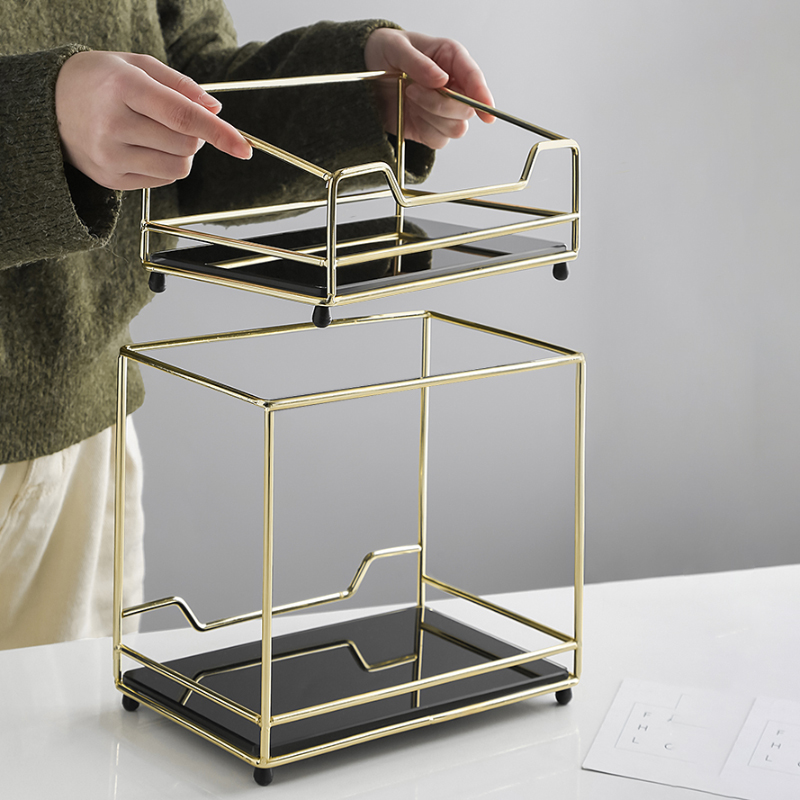 LIVETAI light luxury Nordic style multi-layer square golden iron storage shelf cosmetics sundries decoration