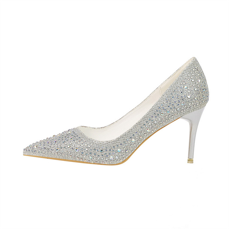 Wedding shoes 2021 spring and summer new crystal pointy nets red heels and shoes women fine with sexy bridesmaids wedding brides single shoes