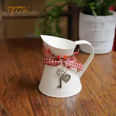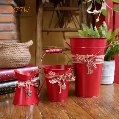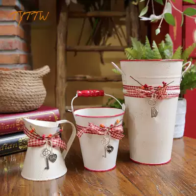 American country exquisite key iron flower imitation flower arrangement tin bucket plaid bow