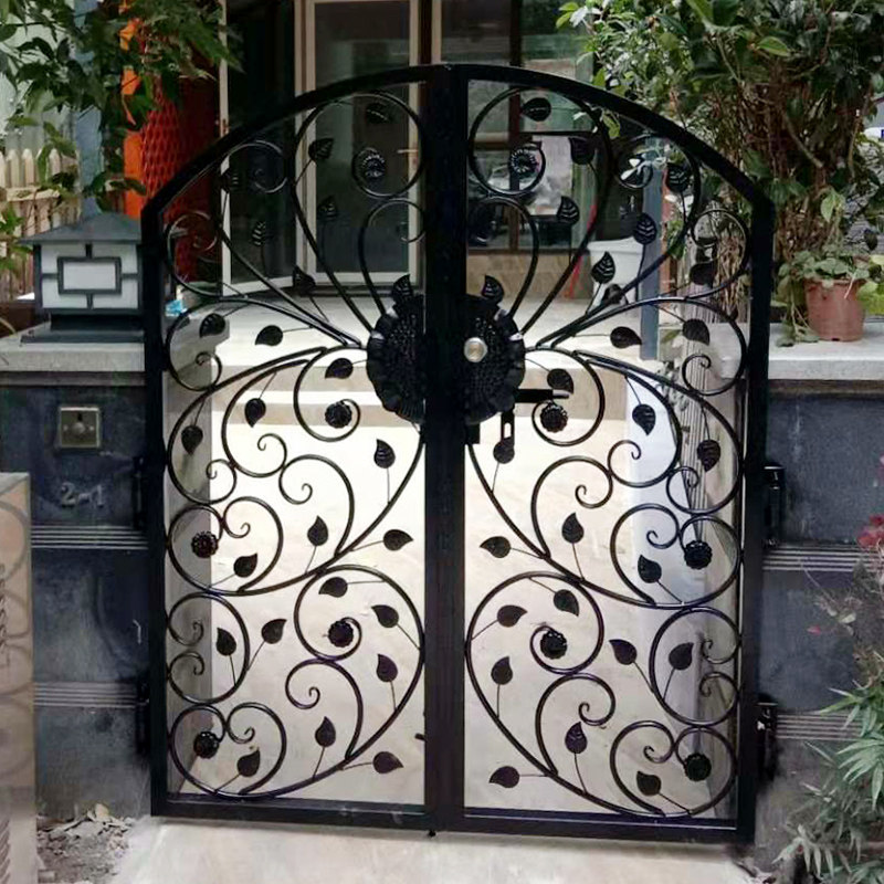 Outdoor courtyard door Hollow carved Wrought iron door European Villa door Antique fence fence home double switch iron door