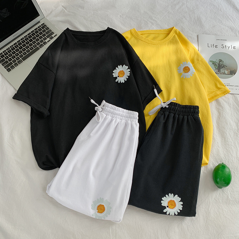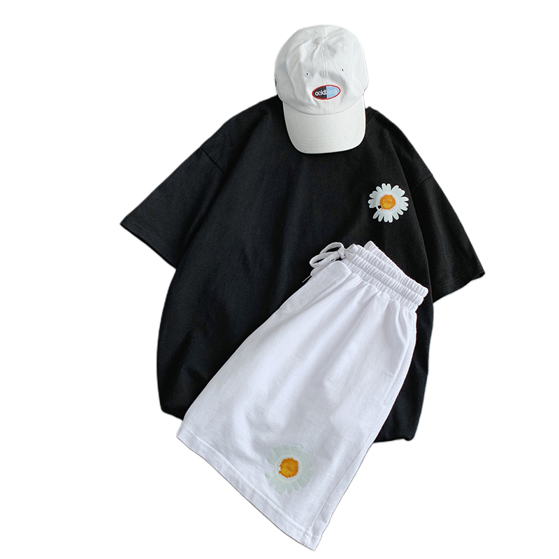 Round-collar short sleeve T-shirt suit Male and Korean version loose 100 hitch T-shirt Ins port Wind set matching clothes