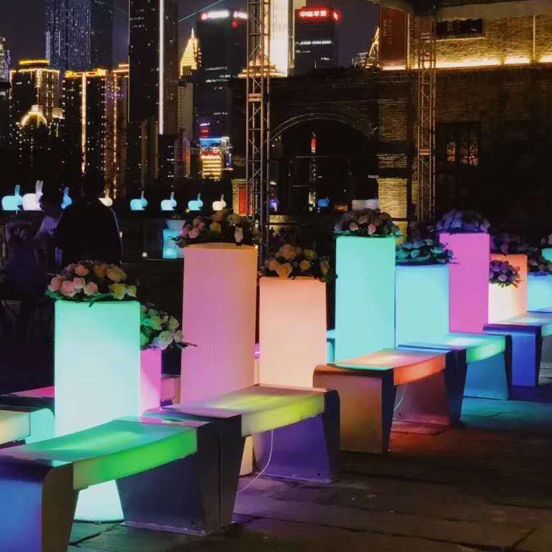 led glowing park chair Outdoor square anti - corrosion long - strip casual chair landscape project beautify backseat