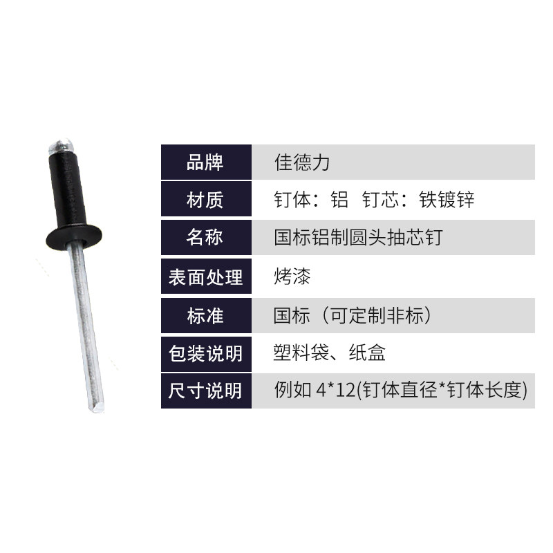 Black Paint Aluminum Bringing Rivet Round Head Opening Stick Rivet Aluminum Rivet Gali Manufacturer