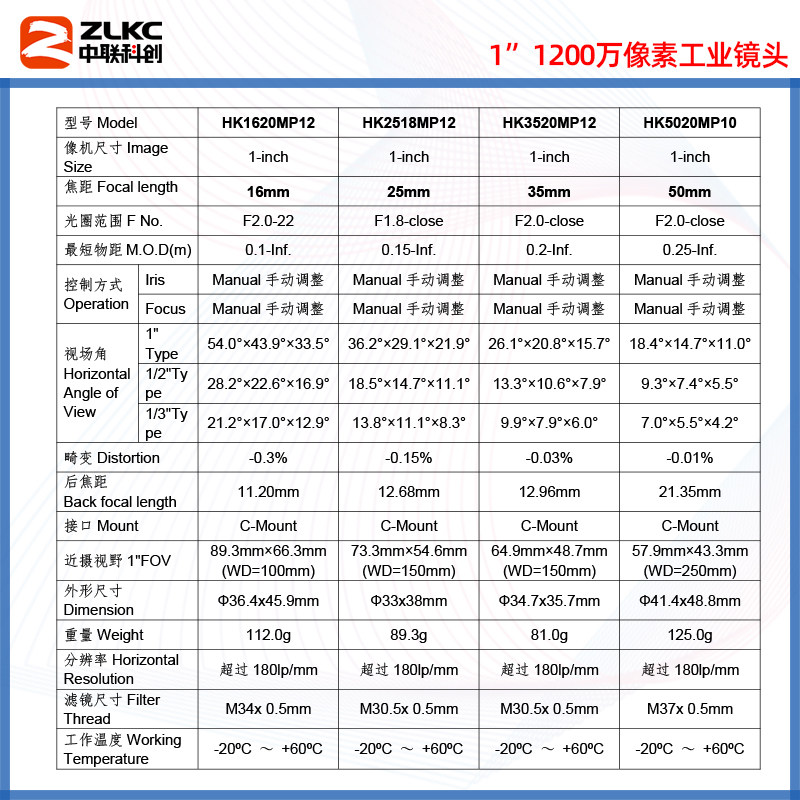 Focal Length 6MM 12M Focal Length 8MM 12M Focal Length 12MM 12M Focal Length 16MM 12M Focal Length 25MM 12M Focal Length 35MM 12M Focal Length 50MM 12 Million