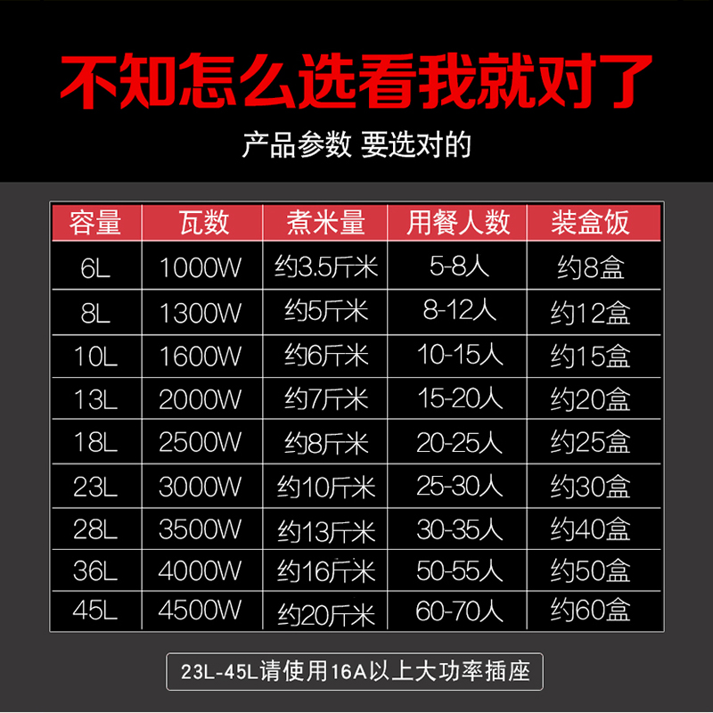 White 8L thick and non-stick 8-12 people with steamer white 10L thick and non-stick 10-15 people with steamer white 13L thick and non-stick 15-20 people with steamer white 18L thick and non-stick 20
