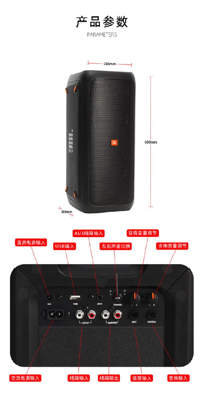 JBL PARTYBOX100 300 1000 multimedia Bluetooth speaker household professional smart karaoke surrounded