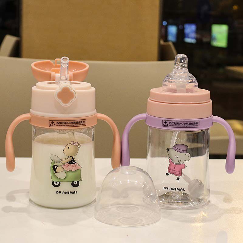 Anti-drop baby sippy cup with double handle anti-choke baby learning to drink milk cup with graduated dual-use bottle