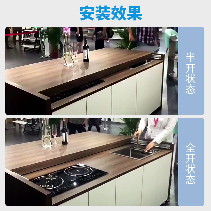 Aluminum alloy open kitchen dining table telescopic slide rail three-section mute desktop translation push-pull rail bar track