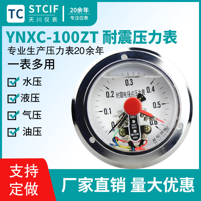 Shanghai Tianchuan YNXC-100ZT Shock Resistant Electric Junction Pressure Meter Axial with edge quake-proof water pressure vacuum controller