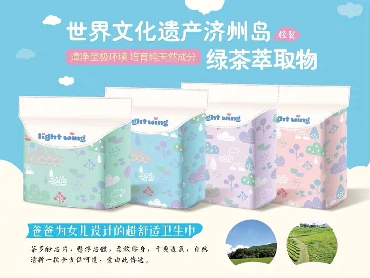 South Korea Lightwing light wing sanitary pads aunt towel day and night with long cotton soft anti-side leakage